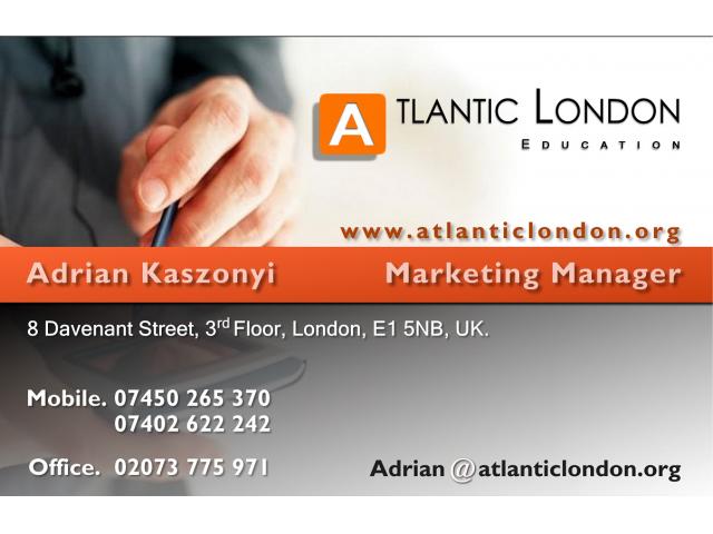 ATLANTIC LONDON, agentie de recrutare in invatamant cauta colaboratori in vederea inscrierii potentialilor studenti la diverse universitati, colegii, cursuri de calificare si cursuri de limba engleza.